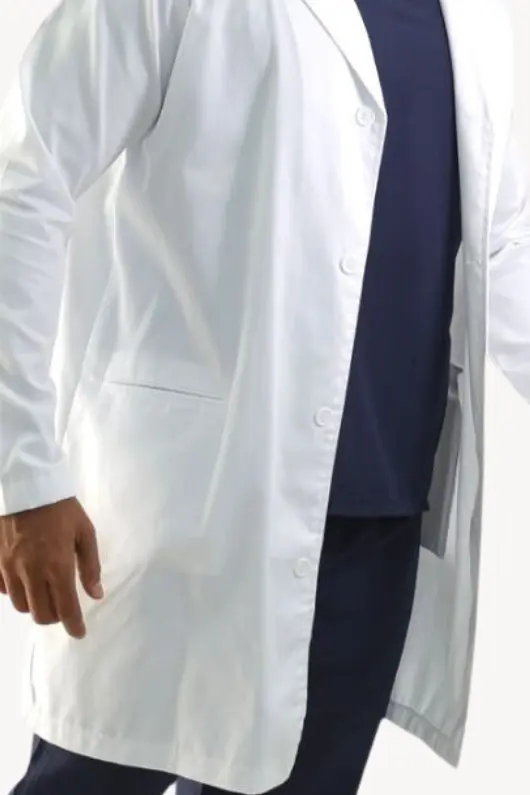 Descripcion de la tela: Nuestra bata clásica esta confeccionada por una tela compuesta de algodón y poliéster de textura suave y manejable.