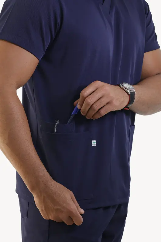 Modelo ejecutivo: confeccionado o fabricado en un tipo de textil, el cual es un tejido en su mayoría conformado por algodon y poliéster y semi estretch, siendo una tela de gran durabilidad y resistencia lo que la convierte en un elemento Perfecto para la fabricación de uniformes haciendo lucir una prenda elegante y a la vez confortable.