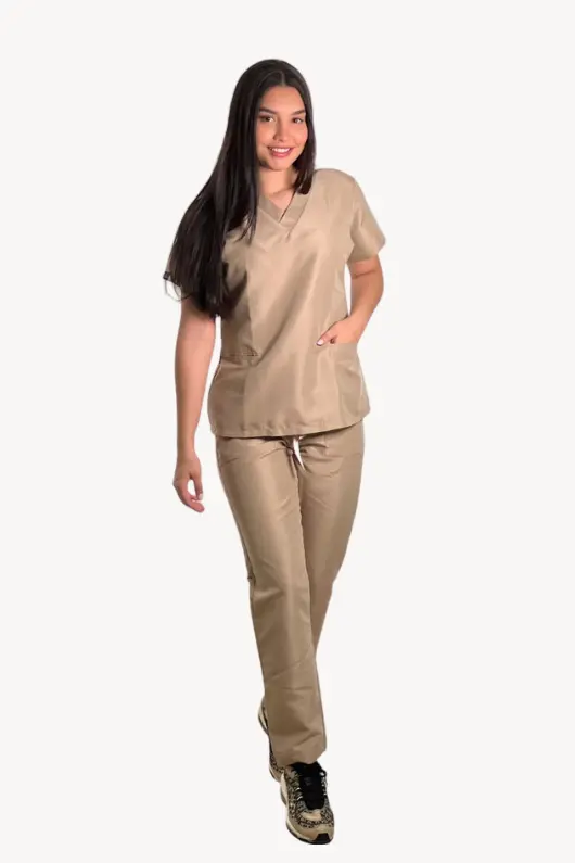 Modelo clásico es también conocido como modelo básico o esencial, está confeccionado en textil microfibra ideal para ejercer en el ambito de la salud ya que su textura es un tejido sintético compuesto de poliéster y poliamida, fuerte y duradera absorbe hasta 7 veces su peso .